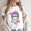Best Teach Love Print White T-shirt Teacher Life Short Sleeve Harajuku Aesthetic Women Gift Graphic T Shirt Y2K Clothes and You will save 60% or US $8 today