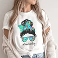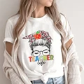 Best savings for Teach Love Print White T-shirt Teacher Life Short Sleeve Harajuku Aesthetic Women Gift Graphic T Shirt Y2K Clothes