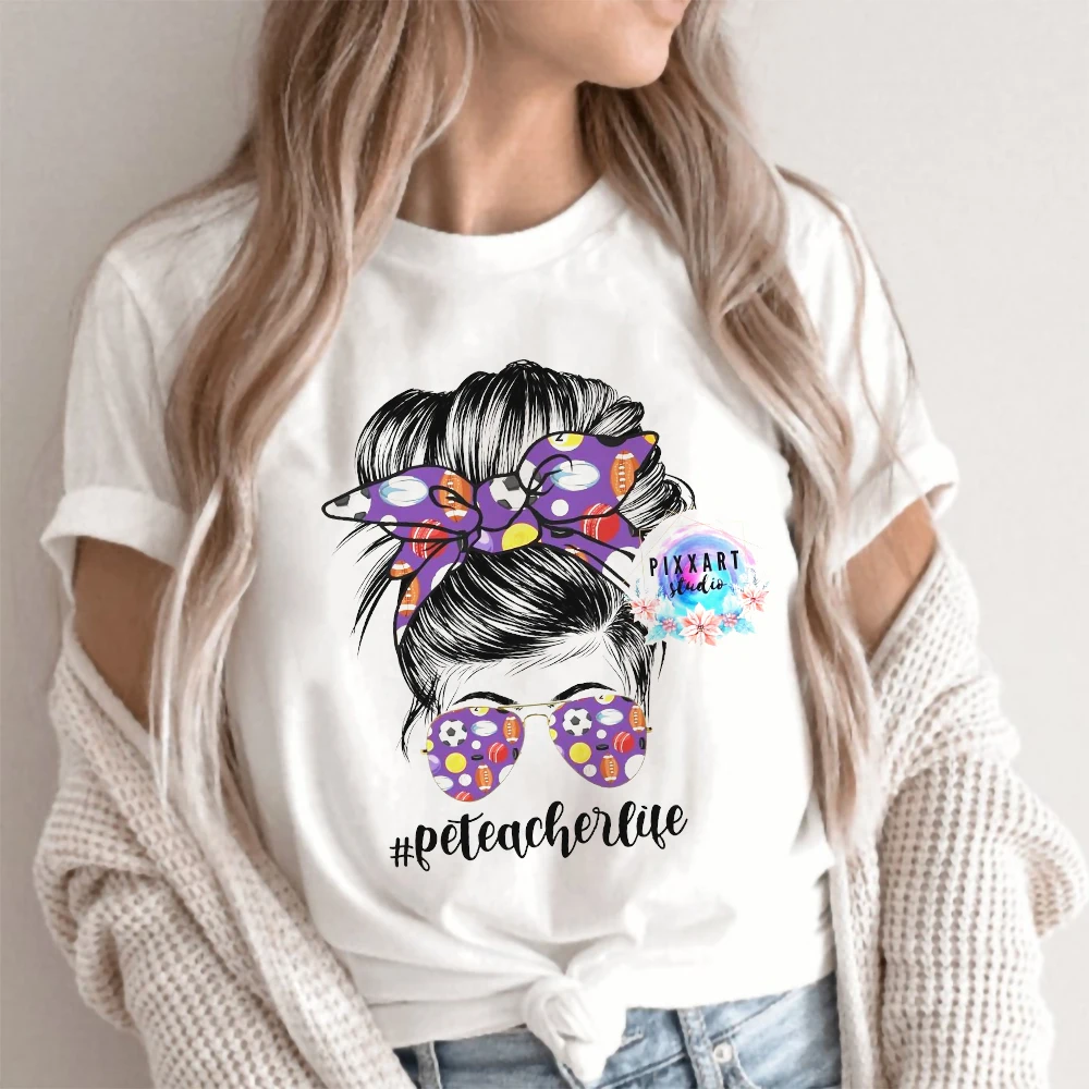 Exclusive Teach Love Print White T-shirt Teacher Life Short Sleeve Harajuku Aesthetic Women Gift Graphic T Shirt Y2K Clothes